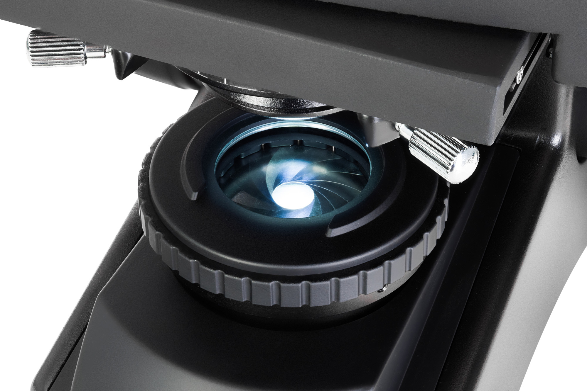 - Полевая и апертурная диафрагмы позволяют настраивать освещение по методу Кёлера
